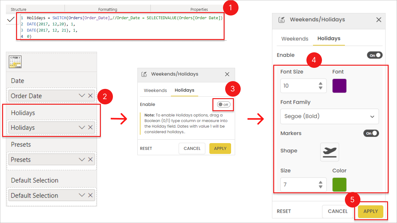 Result: Holiday dates are highlighted.