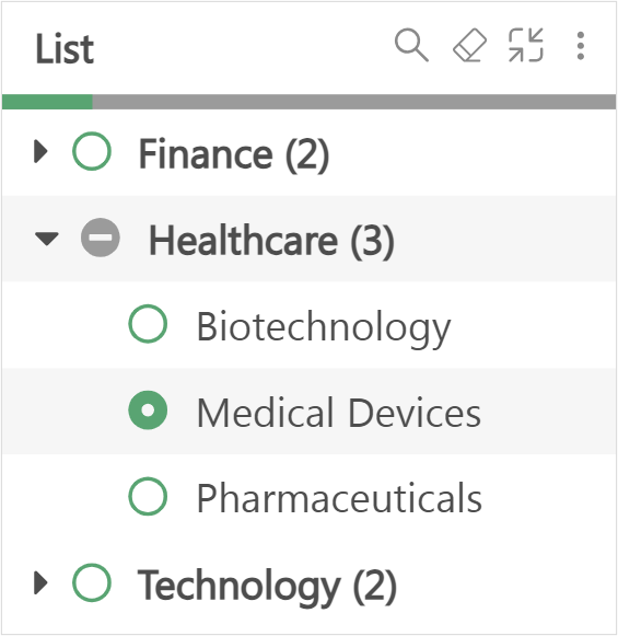 selected item at the top.Control the